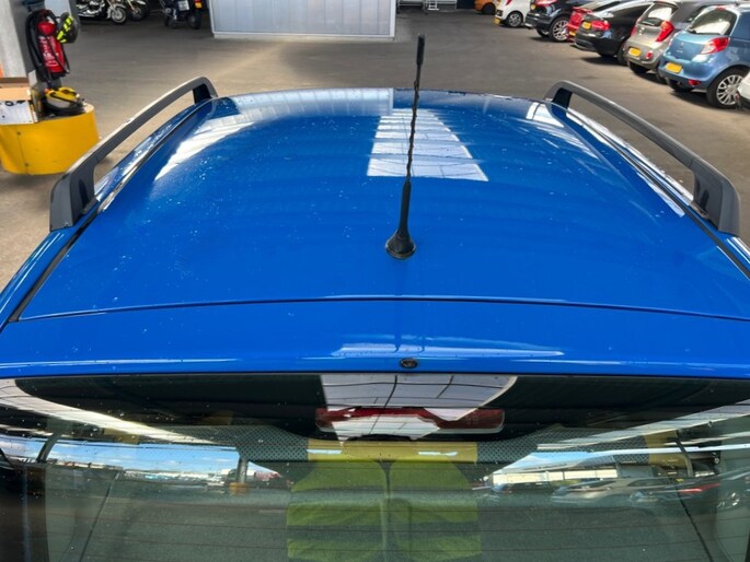 De carrosserie is uitgevoerd in de opvallend frisse kleur blauw en ziet er strak uit. De bumpers hebben dezelfde carrosseriekleur en maken het design af. De dakrails geven een stoere touch en zijn handig voor het vervoeren van bijvoorbeeld een dakkoffer.
