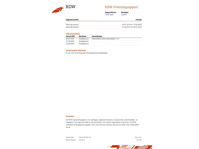 | Wegenbelasting/3mnd | € 92 - € 99 |