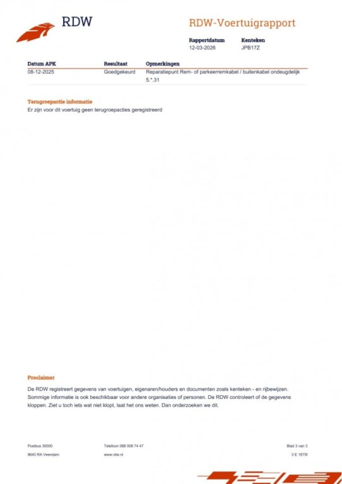 • APK bij aflevering