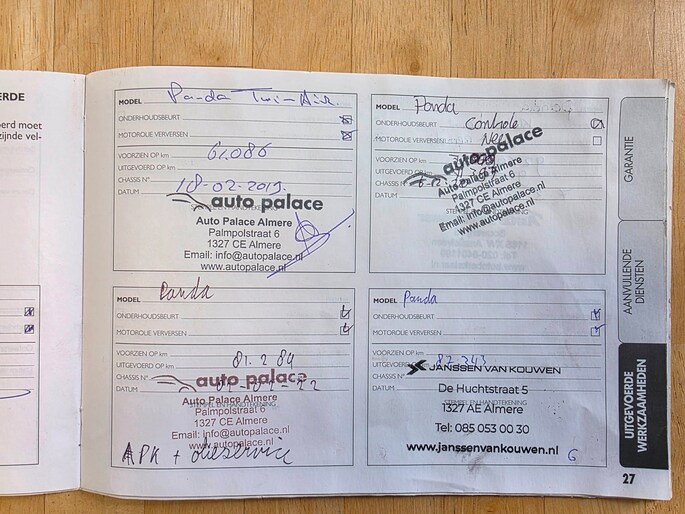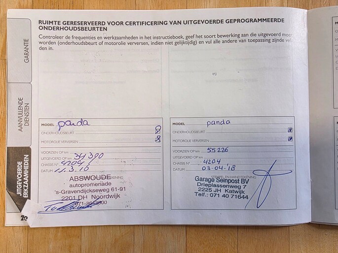 Onderhoudsboekjes: Aanwezig