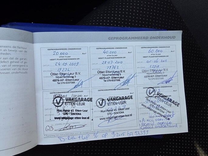 Onderhoudsboekjes: Aanwezig