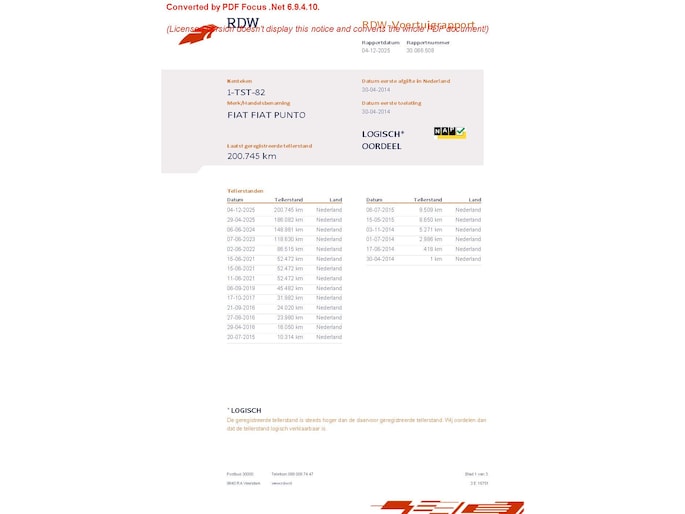Kilometerstand gecontroleerd