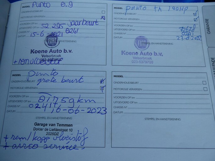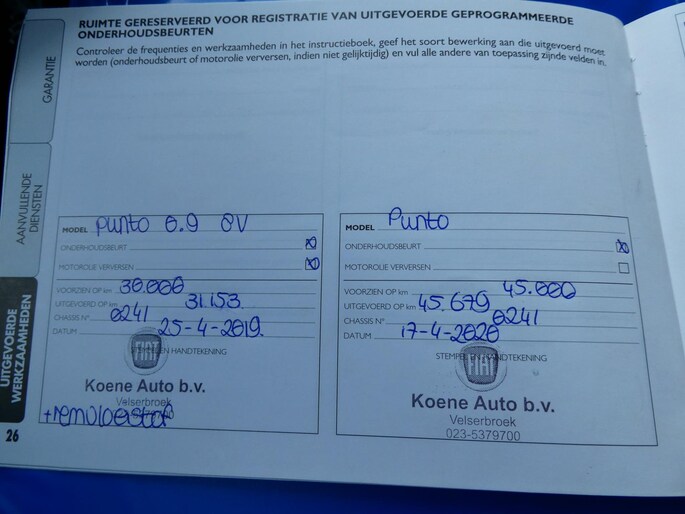 Onderhoudsboekjes: Aanwezig