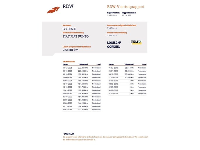 Kilometerstand gecontroleerd