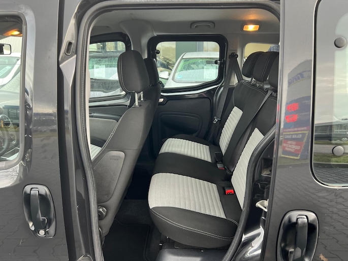 Met vijf deuren en twee zijschuifdeuren biedt de Fiat Qubo een uiterst toegankelijke en flexibele instap voor al uw passagiers. De extra getinte achterruiten zorgen daarbij voor privacy en stijl. Het interieur, voorzien van airco, boordcomputer, radio-CD/MP3 speler en comfortabele stoelen inclusief verstelbare lendesteunen, biedt een aangename rijervaring. Praktische opties zoals een achterbank in delen neerklapbaar, een armsteun voor en verwarmbare voorstoelen maken dagelijks gebruik nóg comfortabeler.