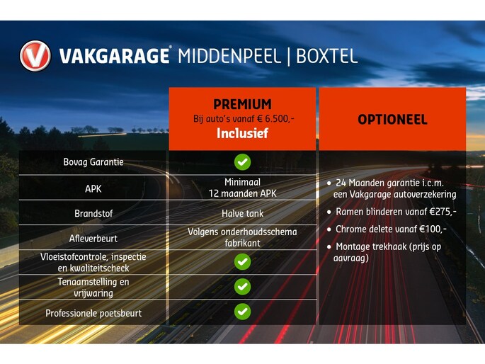 Wij leveren de auto rijklaar af incl het Vakgarage Boxtel Premium pakket: