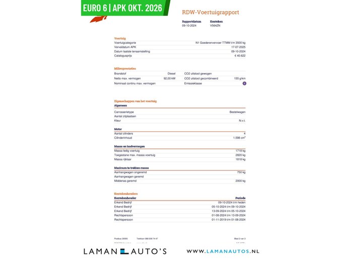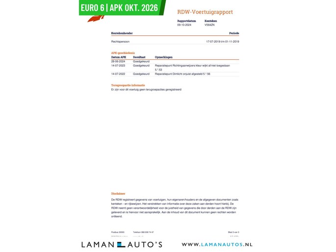 Deze advertentie en de inhoud ervan is met de grootst mogelijke zorg samengesteld. Het is echter mogelijk dat in de gehanteerde advertentietekst bepaalde opties en/of accessoires zijn vermeld welke niet op deze specifieke auto aanwezig zijn. Vraag voor aankoop naar de aanwezige opties en accessoires op de auto of bestelbus van uw keuze. Aan de getoonde informatie kunnen geen rechten worden ontleend en Laman Auto's kan nooit aansprakelijk worden gesteld voor de verstrekte informatie. Voor vragen en/of meer informatie over de exacte uitvoering en beschikbaarheid van de auto bel 06-52509973.