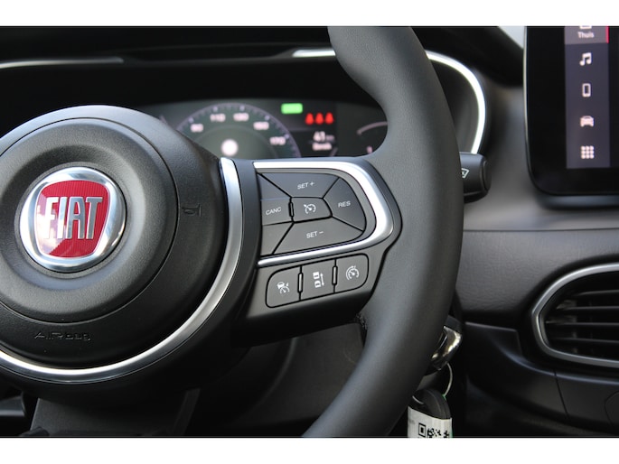 De nieuwste veiligheidssystemen komen in deze Fiat Tipo Cross samen. De actuele snelheidslimiet, een inhaalverbod en andere verkeersborden; de verkeersborddetectie ondersteunt u tijdens elke rit. Onbedoeld buiten de rijstrook raken wordt voorkomen door het Lane-keeping systeem. De sensor van het forward collision warning-systeem registreert permanent de afstand tot voorliggers en grijpt in als een botsing dreigt. Ook helpen het dodehoekdetectie, vermoeidheidsherkenning, autonoom remsysteem en bandenspanningcontrolesysteem, uw rit tot een veilige rit te maken.