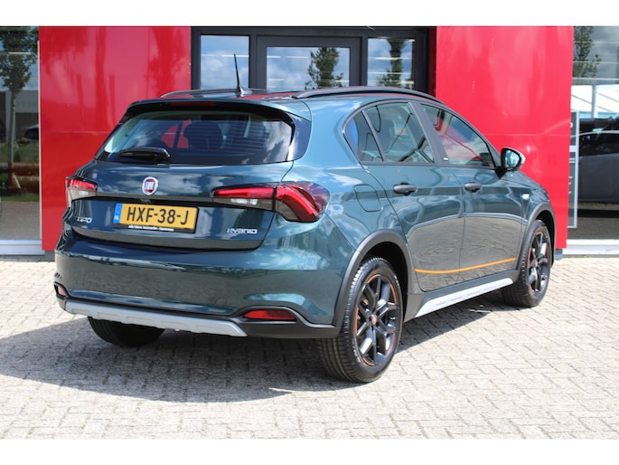 Met z'n extra elektromotor geeft de hybride Fiat Tipo Cross een heel nieuwe dimensie aan het rijden. De auto heeft een opmerkelijk lage kilometerstand van slechts 1088 De krachtige hybridemotor van deze auto is gekoppeld aan een automatische transmissie. Bij de rijke uitrusting horen ook 17 inch lichtmetalen velgen, LED koplampen, in hoogte verstelbare passagiersstoel, donker getint glas achter, in delen neerklapbare achterbank en LED-achterlichten.