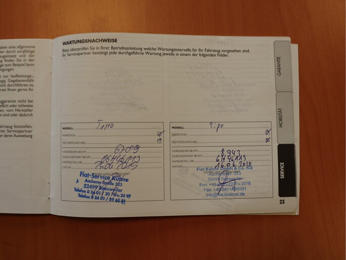 Onderhoudsboekjes: Aanwezig