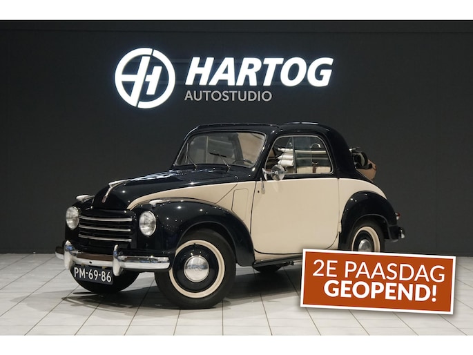 Fiat Toplino uit 06-1949, Volledig klaargemaakt (motorisch, exterieur en interieur), In een unieke kleurencombinatie binnen en buiten, Bekleding en cabriodak in nieuwstaat, van de ruimte achter is nog een bankje gemaakt in dezelfde stijl, Bagagerek achter,