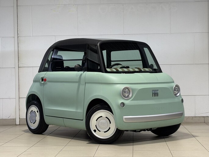 Elektrisch rijden is ontspannen rijden. Achter het stuur van deze Fiat Topolino kunt u zich in alle rust concentreren op de weg. Bent u ook toe aan een auto met elektromotor? Goeie keuze! Het is een nieuwe auto, hij is nu uit voorraad leverbaar. Het panoramadak zorgt voor zicht, licht en een enorm ruimtelijk gevoel. Verder is de Fiat uitgerust met: LED koplampen en LED-achterlichten.
