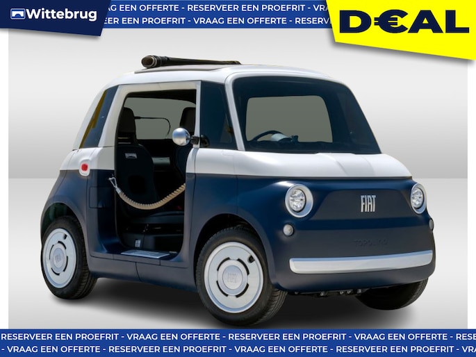 Kies voor minder uitstoot en meer rijplezier: de elektrische Fiat Topolino rijdt fluisterstil en draagt bij aan een schonere stad. En het mooiste? Je mag al instappen vanaf 16 jaar! De Topolino is gekeurd als brommobiel en maakt elektrisch rijden bereikbaar voor iedereen; géén rijbewijs nodig dus!