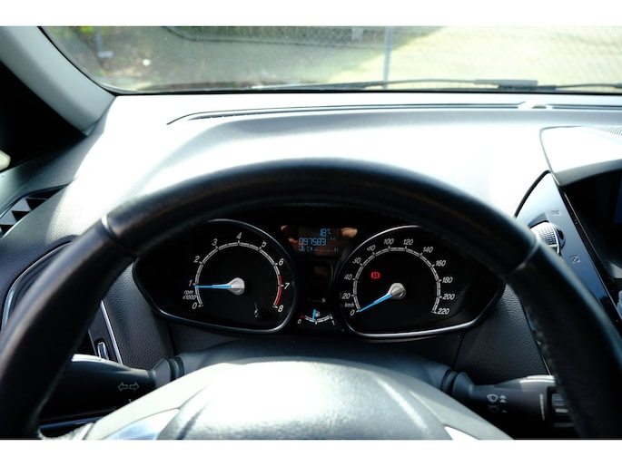 Ook achter de auto geen verrassingen bij het inparkeren. Daarvoor zorgt de achteruitrijcamera. Slimme spraakbesturing herkent gesproken opdrachten en voert ze uit. Beste route, verwachte aankomsttijd: uw eigen navigatiesysteem vertelt u alles! De automatische airconditioning zorgt onder alle omstandigheden voor een prettige temperatuur. Achter het stuur van deze Ford bent u niet alleen. De auto kijkt als het ware met u mee tijdens de rit. De regensensor schakelt de ruitenwissers in als het nodig is en de automatisch inschakelbare verlichting doet de lichten voor u aan. Met cruise control, automatisch dimmende binnenspiegel, lederen stuur, centrale deurvergrendeling met afstandsbediening, boordcomputer en lederen versnellingspook is deze Ford helemaal compleet.