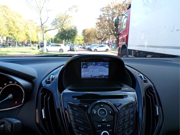 Nekkramp en verdraaide schouders zijn verleden tijd. Door de achteruitrijcamera is iedere meter achter de auto glashelder in beeld. Als u regelmatig met een aanhanger of een fietsendrager op pad bent, is de afneembare trekhaak een praktische extra. Wat wilt u onderweg horen? Er is volop keus, dankzij bluetooth. Het full map navigatiesysteem is met het audiosysteem gecombineerd. Automatische airconditioning verwarmt of koelt het interieur met een druk op de knop. In deze Ford kunt u zich concentreren op het verkeer, terwijl de auto de omgeving voor u in de gaten houdt. Een automatisch inschakelbare verlichting zorgt dat de verlichting aangaat als het donkerder wordt - in tunnels bijvoorbeeld - en de regensensor schakelt de ruitenwissers in als het nodig is. U hoeft er niets aan te doen. Ook dashboard met spraakbediening, cruise control, automatisch dimmende binnenspiegel, lederen stuur, isofix-aansluiting en centrale deurvergrendeling met afstandsbediening horen tot de voorzieningen op deze auto.