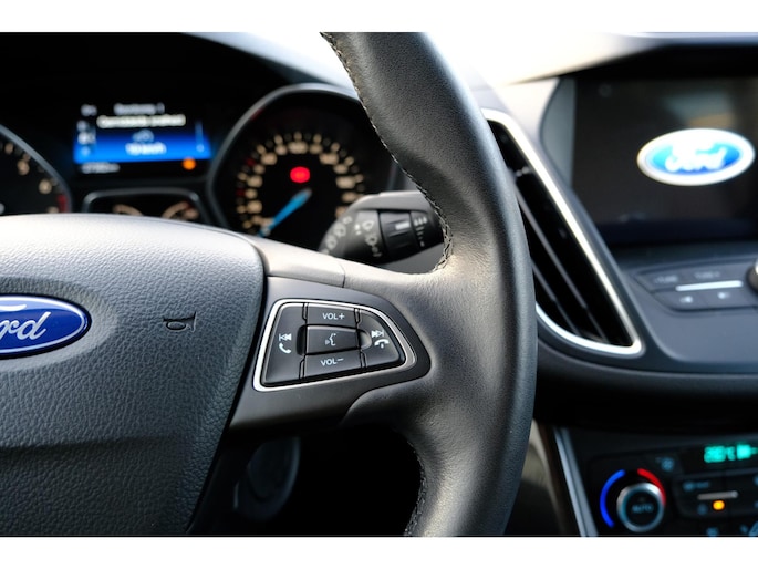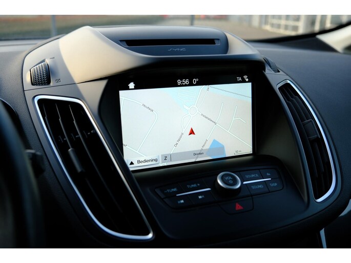 Soepel inparkeren in de krapste parkeervakken. De achteruitrijcamera maakt het mogelijk. De bediening van het audiosysteem en het navigatiesysteem gebeurt met knoppen op het stuur en als u wilt zelfs met uw stem. De electronic climate control zorgt voor een prettige binnentemperatuur. Het hoort bij een intelligente auto als deze dat hij zelf in staat is om zijn omgeving in de gaten te houden. Dat doet deze Ford met een automatisch inschakelbare verlichting en een regensensor. Met de cruise control komt u bijna nog fitter aan dan u vertrekt. En dan is deze auto ook nog eens voorzien van keyless entry, automatisch dimmende binnenspiegel, lederen stuur, centrale deurvergrendeling met afstandsbediening en boordcomputer.