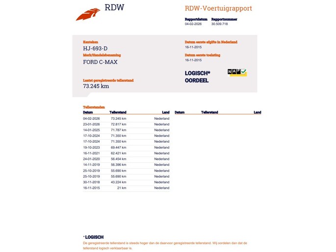Kilometerstand gecontroleerd