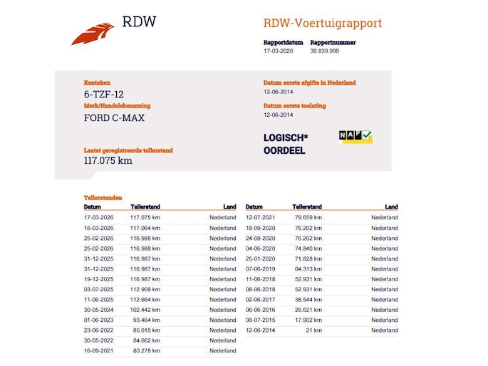 Kilometerstand gecontroleerd
