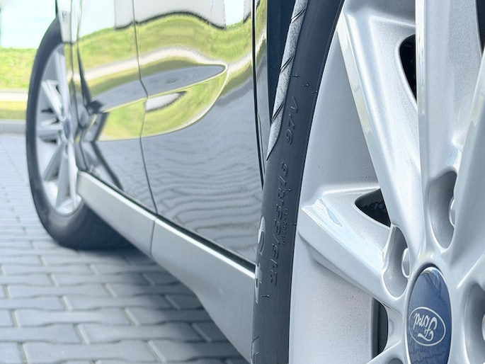 Uw veiligheid op de weg wordt verhoogd door het audio-installatiesysteem met DAB-ontvangst en het navigatiesysteem te bedienen vanaf het stuur of met spraakbediening, zodat uw handen veilig op het stuur blijven en uw ogen gericht zijn op de weg. U verwacht natuurlijk electronic climate control in deze auto, en die is er dan ook. Inparkeren zonder angst voor schade. De parkeersensoren helpen u om moeiteloos in de kleinste parkeervakken te manoeuvreren. Het drukke verkeer eist onderweg al uw aandacht op. Daarom is het goed dat deze Ford is voorzien van diverse systemen die u assisteren tijdens de rit. Een automatisch inschakelbare verlichting neemt het waar als het donker wordt of gaat schemeren, en schakelt dan automatisch de verlichting in. Op dezelfde manier "ziet" de regensensor de eerste spatjes regen en schakelt dan de ruitenwissers in, en als het harder gaat regenen zet hij de ruitenwissers ook in een snellere stand. Maximumsnelheid? Even de cruise control instellen en u blijft perfect binnen de marges. Extra opties op deze auto zijn: keyless entry, automatisch dimmende binnenspiegel, lederen stuur, isofix-aansluiting, centrale deurvergrendeling met afstandsbediening en boordcomputer.