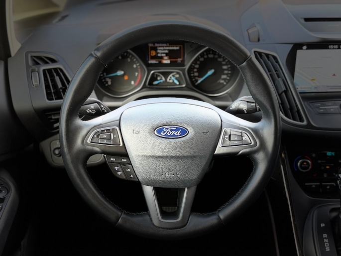 Alle technologie in de Ford C-Max is er op gericht om uw rit veilig en gemakkelijk te laten verlopen. De aandrijving van deze Ford wordt verzorgd door een viercilinder motor en een automatische transmissie. Bij de uitrusting van deze Ford horen onder meer 17 inch lichtmetalen velgen, LED-dagrijverlichting, in hoogte verstelbare passagiersstoel, verstelbare lendensteunen en verwarmde ruitensproeiers.