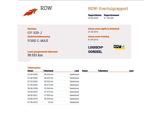 Kilometerstand gecontroleerd