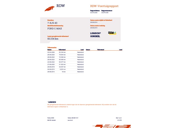 Kilometerstand gecontroleerd