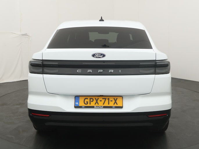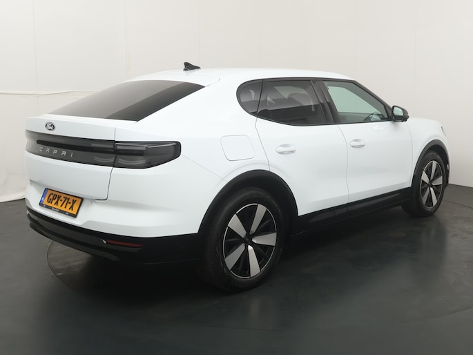 De naam Capri kunt u misschien wel kennen uit het verleden. Het was de sportieve 4 zits coupé die Ford in de jaren 70 en 80 verkocht. Nu is de naam terug voor Fords ruime elektrische crossover. De Capri past niet precies in een hokje. De zit is hoog, maar door het design is de auto wel sportief. Onder de fraaie aflopende daklijn vinden we een bagageruimte van bijna 600 liter! Meer dan de Ford Mondeo. Door de efficiënte aandrijflijn, grote accu en aerodynamische carrosserie is de actieradius volgens de WLTP testmethode maar liefst 627 km! Dat betekent dat deze auto, ook in de dagelijkse praktijk, heel bruikbaar is. Ook op vakantie naar Zuid-Frankrijk of op wintersport in Oostenrijk is geen enkel probleem.