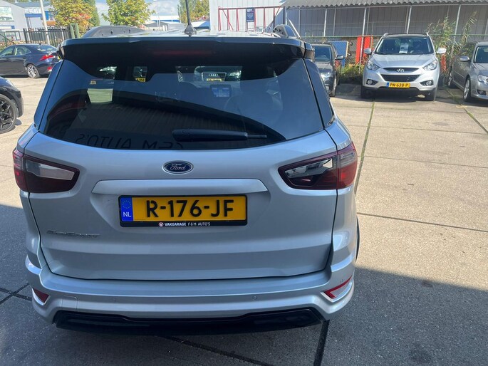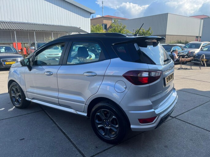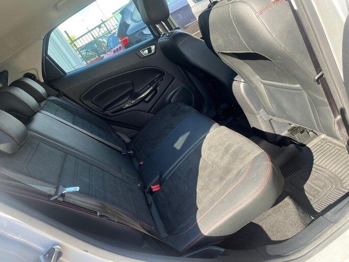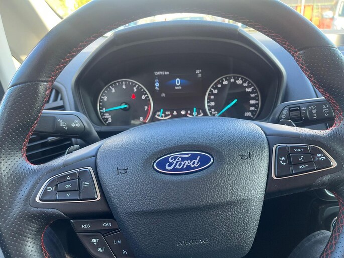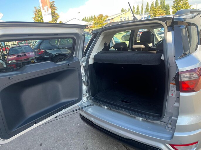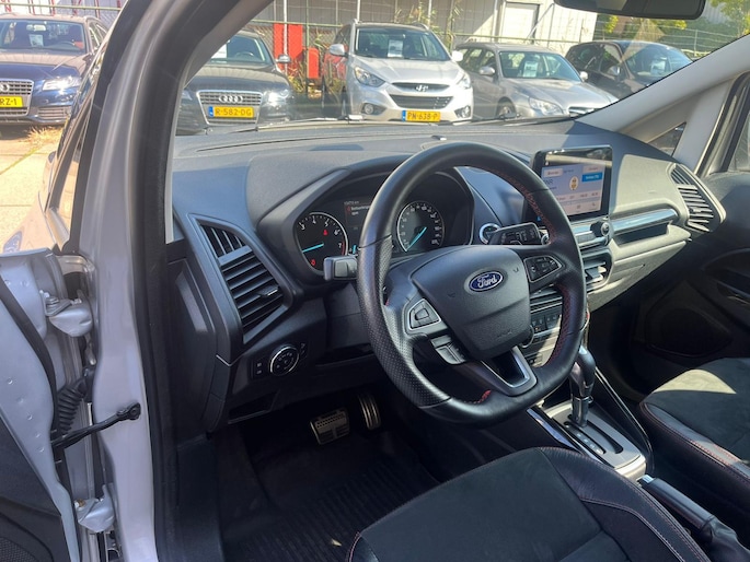 Deze Ford EcoSport staat garant voor vele veilige en comfortabele kilometers. In deze auto vindt u een benzinemotor en een automatische transmissie. De uitmonstering van deze auto wordt gecompleteerd door onder meer 17 inch lichtmetalen velgen, sportonderstel, aluminium dakrailing, verstelbare lendensteunen, metallic lak, elektrisch bedienbare ramen achter, elektrisch inklapbare buitenspiegels, led-dagrijverlichting en in delen neerklapbare achterbank.