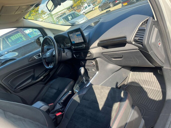 Deze Ford EcoSport staat garant voor vele veilige en comfortabele kilometers. De aandrijving komt voor rekening van een benzinemotor en een automatische transmissie. Bij de uitrusting van deze Ford horen onder meer 17 inch lichtmetalen velgen, sportonderstel, halflederen bekleding, LED-dagrijverlichting, aluminium dakrailing en elektrisch inklapbare buitenspiegels.