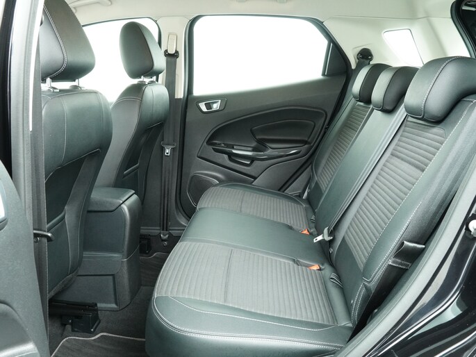De Ford EcoSport is de ideale auto voor wie wél comfortabel wil instappen en hoog wil zitten, maar geen grote auto wil rijden. Dankzij zijn compacte buitenmaten is hij makkelijk te parkeren, terwijl de hoge zitpositie en slimme indeling zorgen voor opvallend veel binnenruimte. De vloer ligt hoog boven het wegdek, wat niet alleen zorgt voor een prettig SUV-gevoel, maar ook voorkomt dat u last heeft van drempels of stoepranden. Door de grote ramen is het zicht rondom uitstekend. Samen met de stoere koplampen, lichtmetalen velgen en robuuste uitstraling maakt dat de EcoSport een compacte SUV met karakter.