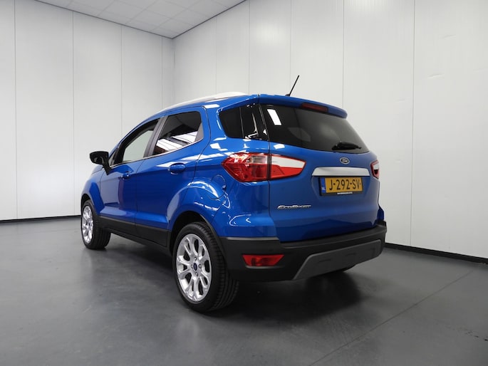 Zoals u van zo'n jonge auto mag verwachten, zijn hier ook de geavanceerde remote services aanwezig. Simpelweg met een app op uw smartphone controleert u op afstand de status van de auto en bedient u diverse functies. De sensatie van superieur geluid wordt geleverd door het high performance audiosysteem. Ook is de auto voorzien van climate control. Boem is ho? Niet bij deze Ford EcoSport. De piepjes van de parkeersensoren waarschuwen u op tijd voor obstakels. De elektronische systemen in deze Ford helpen u actief om comfortabeler te rijden. Een automatisch inschakelbare verlichting en een regensensor houden de omstandigheden onderweg in de gaten. Ook dashboard met spraakbediening, full map navigatiesysteem, audiobediening op het stuur, DAB ontvangst, cruise control en keyless entry horen tot de voorzieningen op deze auto.