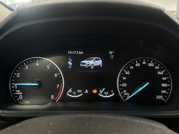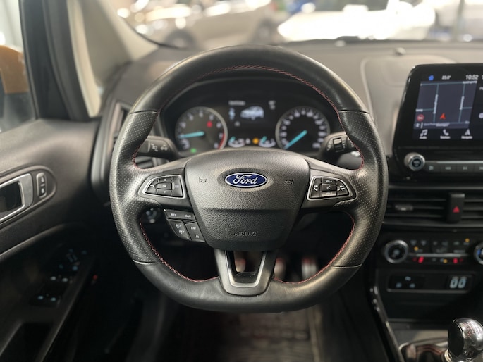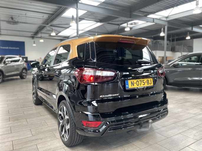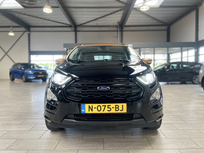 De Ford EcoSport is de ideale auto voor mensen die gemakkelijk willen instappen, maar geen grote auto willen. De EcoSport is compact van buiten, zodat hij gemakkelijk te parkeren is. Tegelijk is de auto erg ruim van binnen. Dat komt met name door de hoogte. Er is geen auto in deze klasse die zo hoog is als de EcoSport. Ook de vloer van de auto staat lekker hoog ten opzichte van de weg. Zo zit u lekker hoog en hoeft u zich geen zorgen te maken over stoepranden of drempels. Door de grote ramen is het zicht rondom uitstekend. Door de fraaie koplampen, lichtmetalen velgen en de SUV-achtige uitstraling, staat er toch een stoere auto! Zeker met de 18" lichtmetalen velgen is de auto een imposante verschijning. Zeer speciaal is de speciale combinatie van de lak Agathe Black en het dak dat is uitgevoerd in de kleur Tiger Eye.