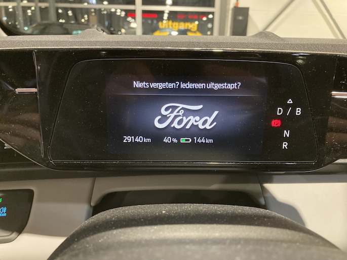 Centraal op het dashboard, onder handbereik ziet u het grote touchscreen. Naast navigatie en bluetooth is het ook mogelijk om via Apple Carplay of Android Auto uw telefoon te koppelen. U kunt dan apps als Google Maps of Spotify op het grote scherm bedienen. Zo hoeft u nooit meer de navigatiekaart te updaten en staat u nooit meer onnodig lang in de file door zeer nauwkeurige verkeersinformatie. Het koppelen gaat draadloos zodat u de telefoon niet meer uit uw broekzak of jaszak hoeft te halen. Uw telefoon kunt u in het vak voor het touchscreen leggen zodat hij wordt opgeladen. Het scherm is bovendien te schuiven. In de achterste stand ligt het gelijk met het dashboard. In de voorste stand staat het scherm rechtop en steekt het boven het dashboard uit. Zo kunt u zelf bepalen wat voor u een fijne positie is. Achter het scherm is een verborgen ruimte die Ford de my private locker noemt. Een opbergruimte die in de achterste stand is afgesloten en is voorzien van 2 USB-C aansluitingen. Ook in de tunnelconsole is een groot afsluitbaar vak. Het is groot genoeg om een compacte laptop in de bewaren.