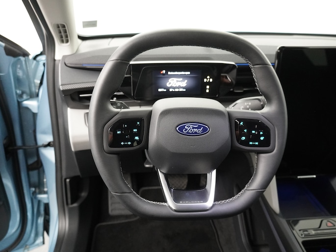 De Ford Explorer is de stoere elektrische SUV van Ford. Hij koppelt een robuust uiterlijk aan uitstekende prestaties en een groot rijbereik. Door de efficiënte aandrijflijn en grote batterij is het rijbereik volgens de WLTP testmethode 603 km! Dat betekent dat u bij normaal gebruik de auto misschien maar eens in de week hoeft op te laden. Ook op vakantie gaan is met deze auto geen enkel probleem. Als het einde van de energievoorraad van de accu in zicht komt, hebben de meeste bestuurders en inzittenden zeker al behoefte aan een korte pauze. In ongeveer 25 minuten is de auto bij de snellader weer geladen voor de rest van de reis. Zo kunt u met een gerust hart afreizen naar bijvoorbeeld Zuid-Frankrijk! De laadpalen hoeft u niet zelf op te zoeken. Met 1 druk op de knop van het touchscreen laat de Ford zien waar u kunt laden en tijdens lange trips zal de auto zelf de laadstops inplannen. Met de aanwezige warmtepomp kan de auto nog efficiënter het interieur verwarmen of koelen. Zo wordt de batterij optimaal gebruikt om zoveel mogelijk kilometers te maken.