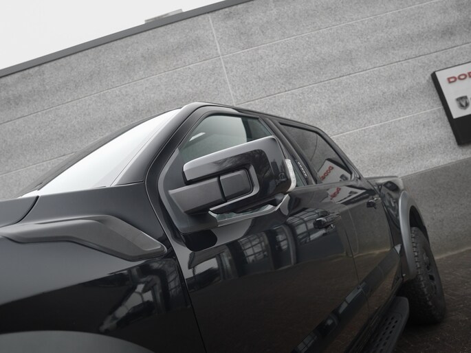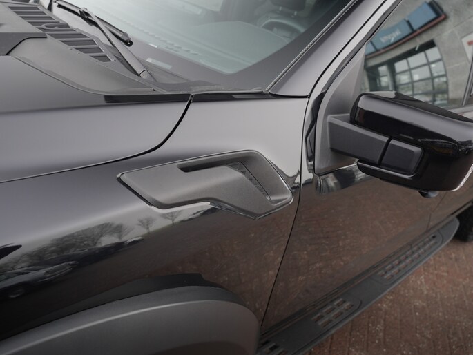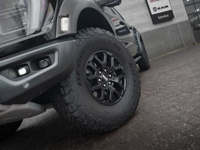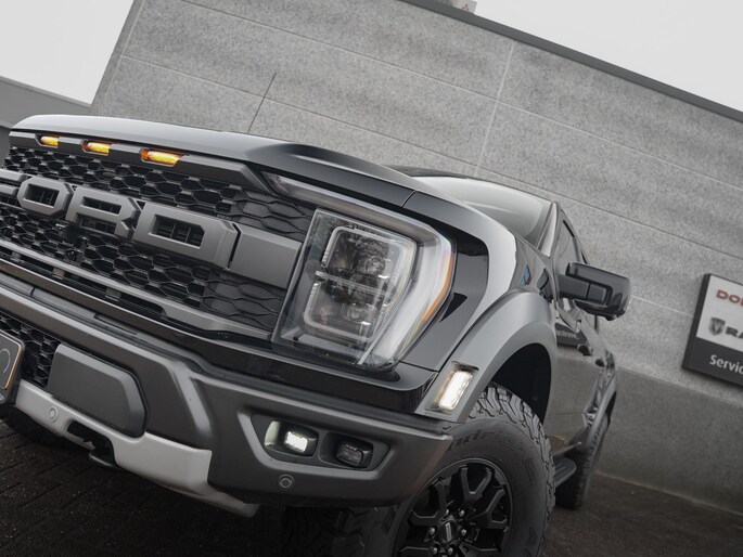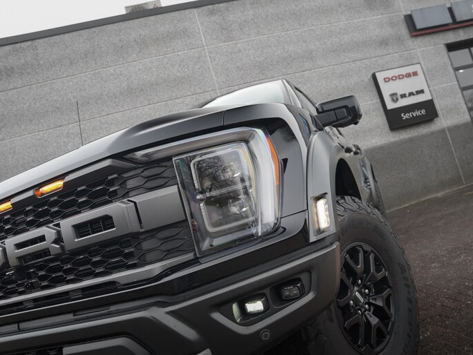 Wat een verschijning! Deze Ford F-150 Raptor in Agate Black, voorzien van zwarte velgen met 37" BF Goodrich banden. Deze auto hebben we nieuw geleverd in 2024 en is om die reden nog vrijgesteld van BPM.