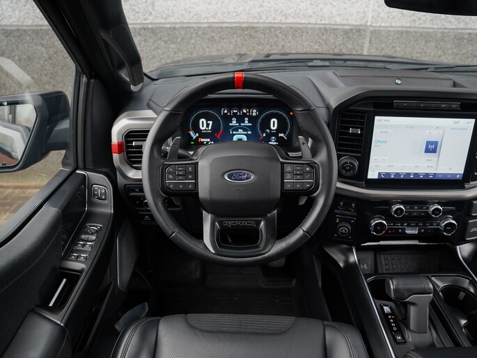 De Raptor is voorzien van een off-road onderstel met adaptieve Fox Racing shocks en five-link achterwiel ophanging. Van binnen slaan luxe en sportiviteit de klok. Zo is de pick-up voorzien van adaptive cruise control, groot panoramadak, sportstoelen voor, schakelflippers achter het stuurwiel, 360 graden camera en Raptor drive modes.