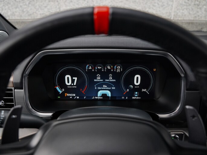 Niet alleen het onderstel is top of the bill, ook het infotainment systeem is voorzien van de laatste technologie. Zo kun je gemakkelijk je buiten verlichting aan zetten als "zone verlichting", handig wanneer je terrein om de auto moet verlichten. Daarnaast zijn draadloze Apple CarPlay en Android Auto aanwezig. Het instrumentarium is ook volledig digitaal en kan naast snelheid en toeren ook alle off-road parameters weergeven.