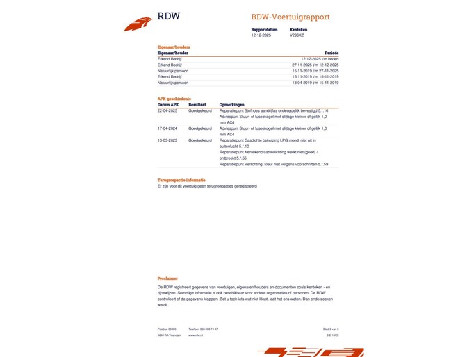 - APK minimaal 6 maanden geldig
