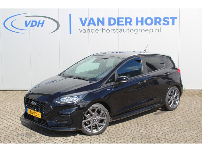 1.0-100pk EcoBoost ST-Line. Luxe en sportieve Fiesta ! Stoel-, stuur- en voorraamverwarming, keyless entry/keyless go, adaptive cruise cntrl, volautm. airco, camera, parkeersensoren v+a, navigatie by Apple/Android, LM wln, lane assist, LED verlic