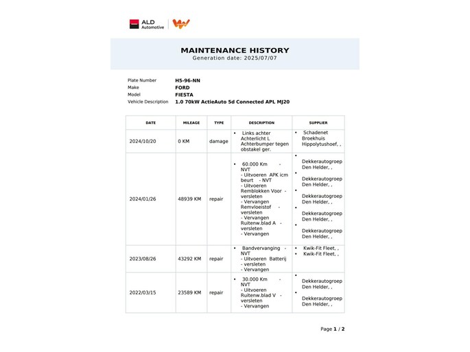 Onderhoudshistorie aanwezig: Ja