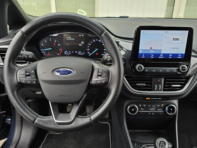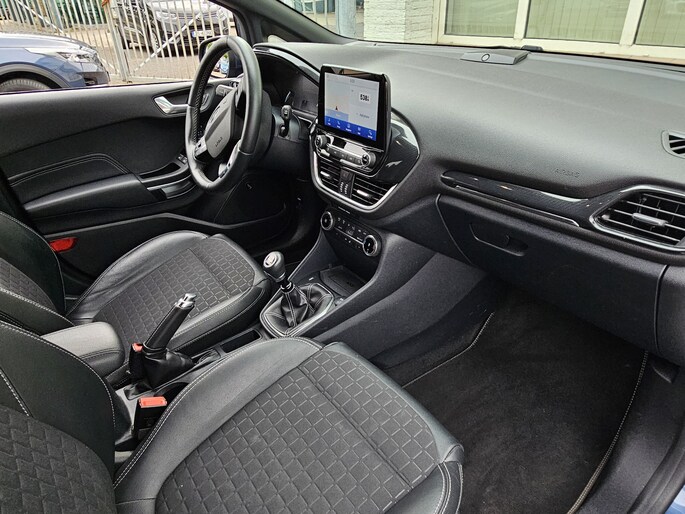 De directe PAAS rijklaarprijs zonder inruil is 16.499! Voor dit bedrag heeft de auto een pre inspectie en vloeistof controle gehad. De showroom vraagprijs van deze auto is 17.450 dus als u niets inruilt dan wordt u een PAAS korting verleend van 951 euro! Deze prachtige Ford Fiesta Hybrid uit 2021 in de Active X uitvoering in de stijlvolle kleur blauw metallic met een donkergrijs stoffen interieur combineert sportiviteit, luxe en comfort in één stoere vijfdeurs hatchback. De auto verkeert in zeer nette staat, zowel technisch als optisch. Motor en bak schakelen soepel en comfortabel zoals u van Ford mag verwachten en het interieur is netjes en verzorgd. Deze sportieve, betrouwbare en goed onderhouden Ford Fiesta Hybrid is een Nederlandse auto van de 1e eigenaar met Nationale Auto Pas en is APK gekeurd t/m 28 mei 2027! Deze Active X is verder uitgerust met de soepele, 124 Pk sterke 1.0 EcoBoost motor en is oa voorzien van audiosysteem met bluetooth, lm velgen, cruise control, navigatie, Carplay/Android auto, achteruitrij camera en geregelde airco!