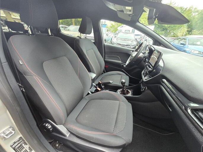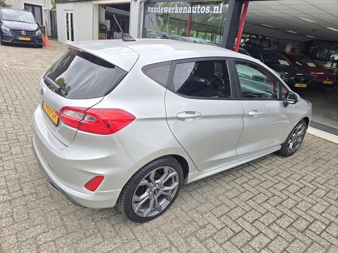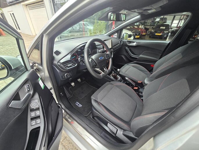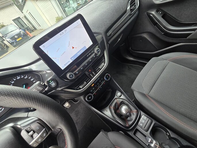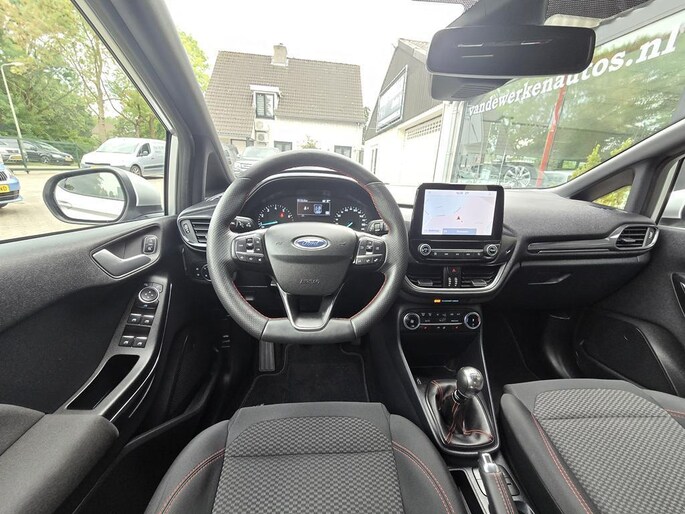 In algehele nieuwstaat verkerende 5 deurs Ford Fiesta in de sportieve en complete ST-Line X uitvoering met o,a: Climate controle, Cruise controle, Navigatiesysteem, Bluetooth telefoon voorbereiding, Spraakherkenning, Start/Stop systeem, Isofix, Elektrisch pakket, 17 inch Lm velgen, full LED verlichting, Lane keeping assist, DAB Radio met usb aansluiting, Zwarte hemel, Sportstoelen, Sport onderstel, ST-Line bodystylingspakket, Winterpack, Voorruitverwarming, Stuurverwarming, Stoelverwarming, Android auto, Apple Carplay, enz enz.