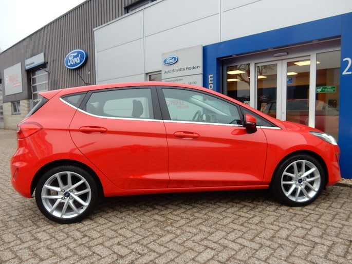 Sportief, stijlvol en compleet – deze Ford Fiesta Titanium in Race Red wil je niet missen!
