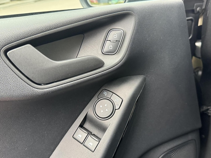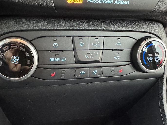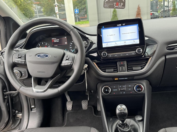 Waar u zelf ook bent, u staat altijd in contact met de auto via de app op uw smartphone. Zo controleert u uiteenlopende functies, ook op afstand. Op een drukke weg heeft u soms ogen in uw achterhoofd nodig. De sensoren aan de achterzijde nemen die functie over en geven een achteropkomend verkeer waarschuwing als een achterligger te dicht op u zit. Of het buiten nu warm is of koud, dankzij automatische airconditioning is het binnen altijd behaaglijk. Een andere zender zoeken of het volume wijzigen? Het audiosysteem heeft bediening op het stuur. De DAB-ontvanger zorgt voor een ruime keuze uit digitale radiozenders en een kristalheldere geluidsweergave. Met parkeersensoren achter, cruise control, centrale deurvergrendeling met afstandsbediening, boordcomputer en verstelbaar stuur is deze Ford helemaal compleet.