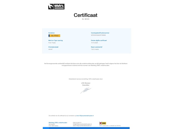Kilometerstand gecontroleerd