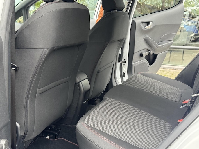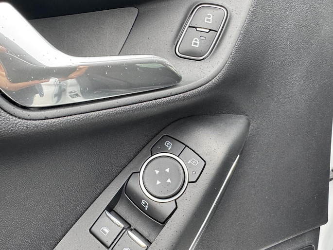 Waar u zelf ook bent, u staat altijd in contact met de auto via de app op uw smartphone. Zo controleert u uiteenlopende functies, ook op afstand. In deze Fiesta vindt u niet alleen schakelaars op het stuur om het audiosysteem te bedienen en het navigatiesysteem, maar er is ook spraakbediening. In een auto als deze kunt u niet zonder climate control, zodat de temperatuur altijd goed is. Soms heeft u meer parkeerruimte dan u denkt. Maar soms ook niet. De parkeersensoren vertellen precies hoeveel. Met de elektronische sleutel in uw zak en met één druk op de knop start u de auto. Dat is keyless start! Met sportstuurwiel, centrale deurvergrendeling met afstandsbediening, boordcomputer en lederen versnellingspook is deze auto helemaal compleet.
