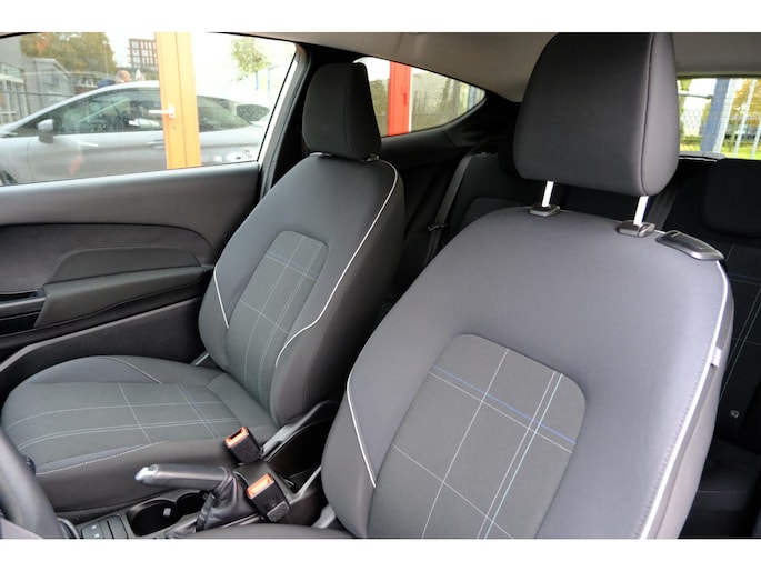 De nieuwste veiligheidssystemen komen in deze Ford Fiesta samen. Met het Lane-keeping systeem komt u nooit per ongeluk buiten de rijstrook. Mocht zich een gevaarlijke situatie voordoen, dan geeft de Brake Assist extra remkracht en verkort de remweg. Verder is deze auto uitgerust met hill hold functie en bandenspanningcontrolesysteem.