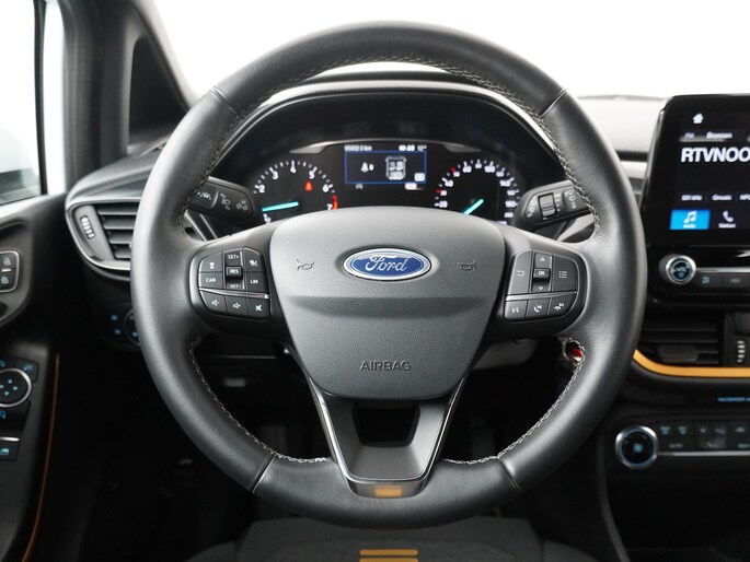 Deze Ford Fiesta is de Active uitvoering. Dat betekent dat de auto verhoogde vering heeft en daarmee een hogere instap heeft. Daarnaast heeft de auto rondom de carrosserie kunststof beschermdelen.