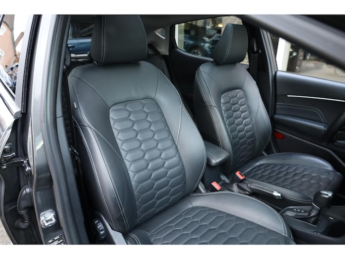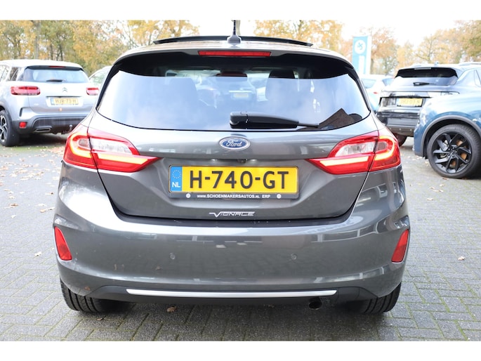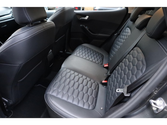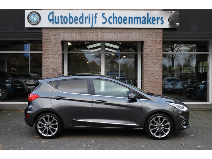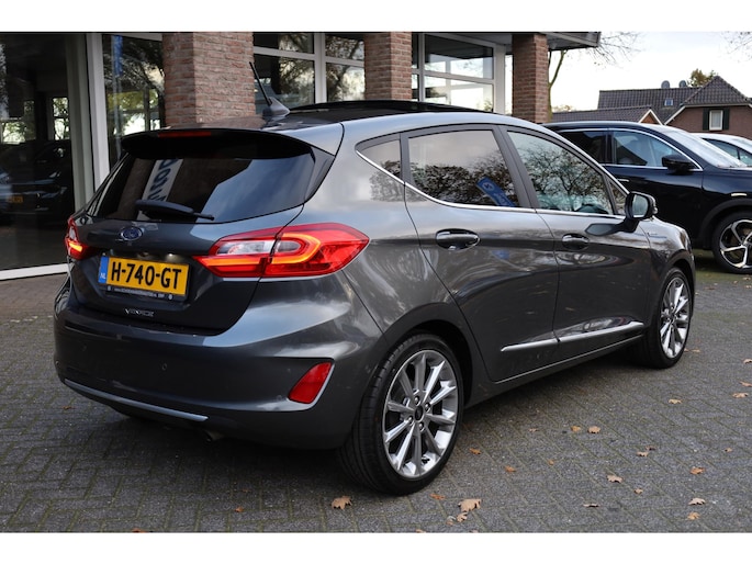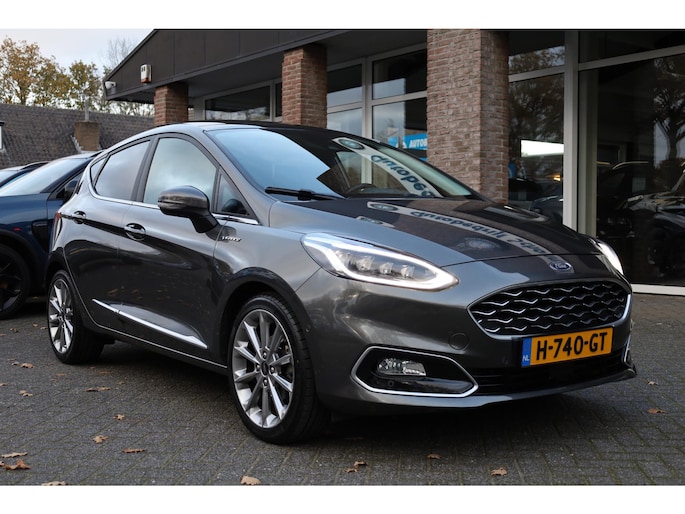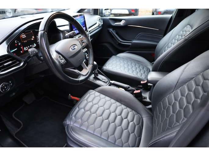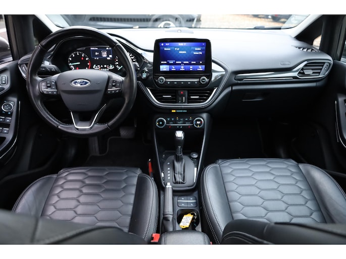 Alle technologie in de Ford Fiesta is er op gericht om uw rit veilig en gemakkelijk te laten verlopen. Met zijn benzinemotor en automatische transmissie is dit een prima auto voor nog vele kilometers. Ook een fijne dosis klasse is bijgeleverd, met het lederen interieur. 's Winters komen de verwarmbare voorstoelen heerlijk van pas. Het elektrisch bediende glazenpanorama dak zorgt voor licht en gevoel van ruime. Als u de stuurverwarming inschakelt, geniet u van weldadige warmte voor uw handen en vingers. Tot de uitrusting behoren ook 17 inch lichtmetalen velgen, LED koplampen, donker getint glas achter, in delen neerklapbare achterbank, LED-achterlichten en verstelbare lendensteunen.