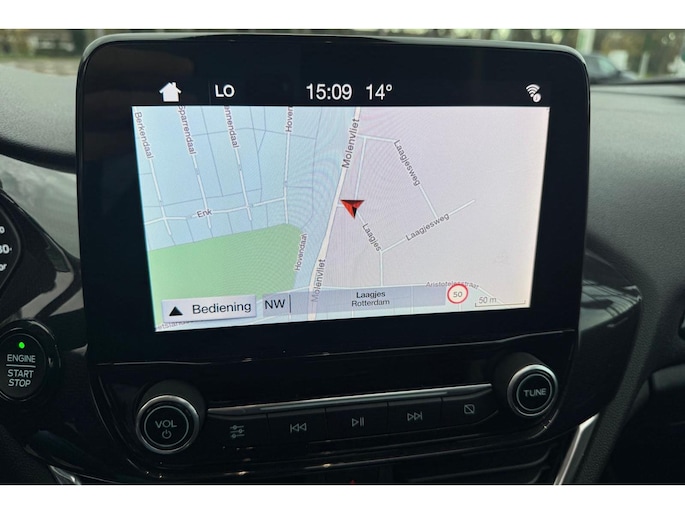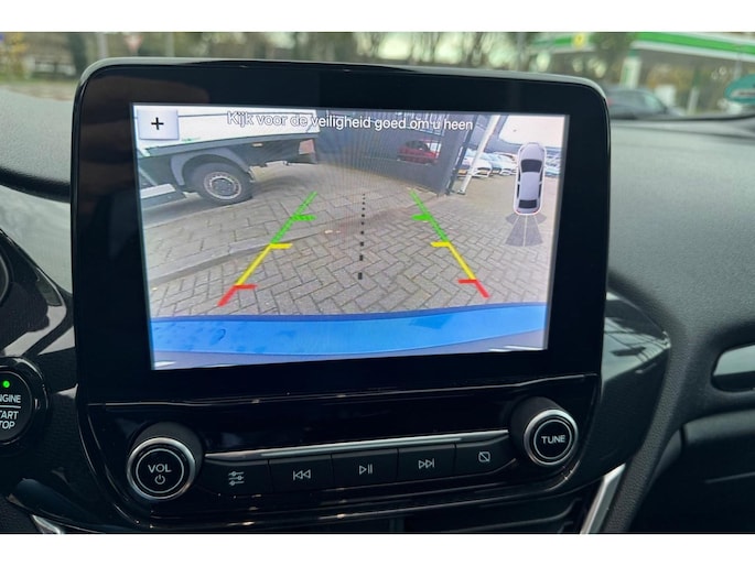 Zoals je mag verwachten van deze Ford Fiesta is hij uitgerust met een reeks aan actieve veiligheidssystemen. Een camera houdt de juiste koers binnen de rijstrook in de gaten en het Lane-keeping systeem corrigeert bij afwijkingen. Mocht zich een gevaarlijke situatie voordoen, dan geeft de Brake Assist extra remkracht en verkort de remweg. In deze Ford vinden we verder een hill hold functie en bandenspanningcontrolesysteem.